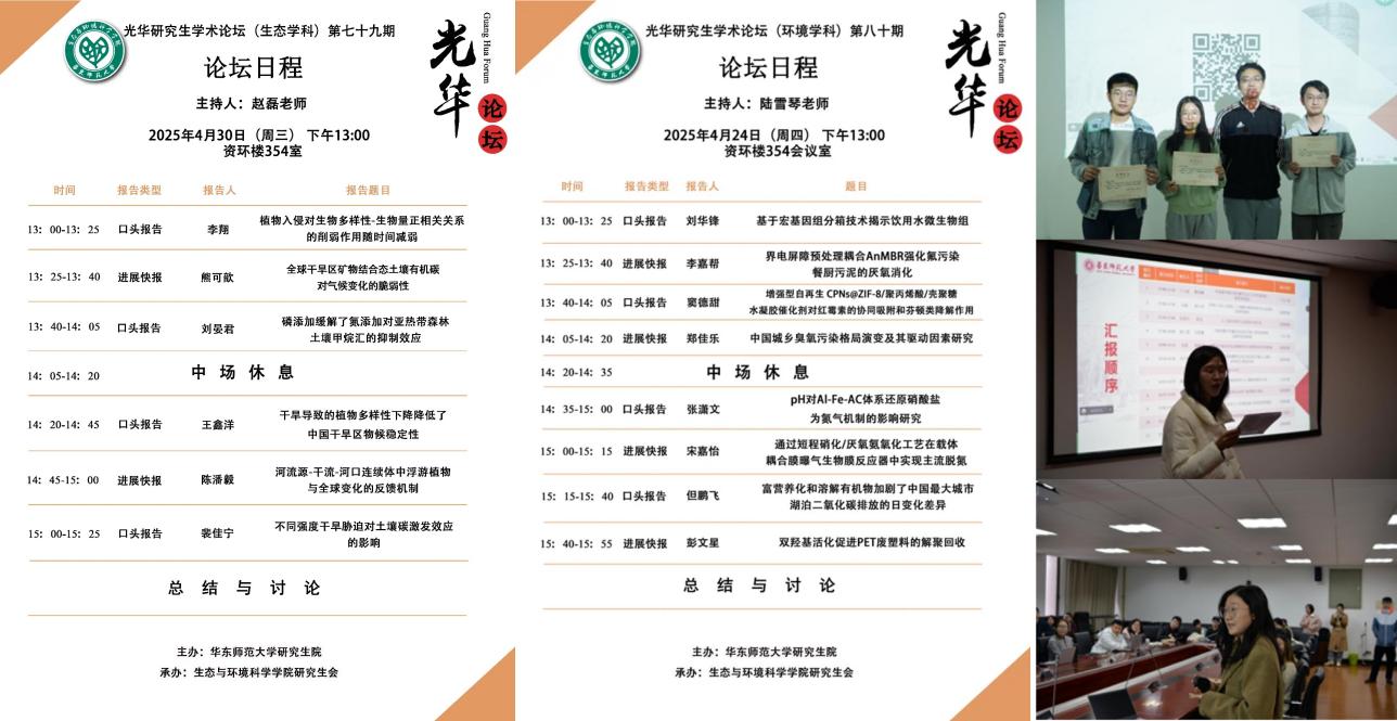 学院依托团委学生会、研究生会、环保公益社团O3协会等学生组织开展丰富多彩的学生活动。院研会以学术活动为主体,文体活动为两翼。通过举办研究生光华学术论坛、丽娃大讲坛、学术沙龙、学术先锋等系列活动,学院内形成了浓郁的学术氛围。通过举办柿柿如意手工制作活动、制作手工香皂、人民城市主题参观等活动丰富学生课余生活。结合学院专业特色,在紫竹小学、永德实验小学、马桥小学以及闵行社区开展生态环境教育课程。暑期组织“美丽中国实践团”前往江西上饶、云南姚安、上海崇明等地开展“生态文明在行动”支教活动。开展就业服务月、生涯启航月系列活动,带领学生访企拓岗,举办行走的苏州河——“二十一公里”的环境实习之旅等,助力学生生涯发展。院团委被评为校五四红旗团委,院研会被评为校红旗研会,O3协会被评为上海市活力社团。