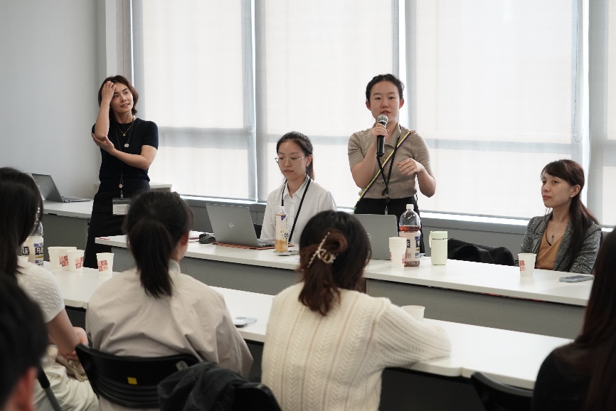 龚雪对华东师范大学一行表示热烈欢迎,并就企业概况、业务内容、企业竞争力以及企业文化等方面展开介绍。校友代表严笑芸就其自身入职经历,向同学们介绍了她目前的工作内容,并以“环境富于变化”和“包容性高”作为关键词,概括了她入职以来的感受。校友代表吴忠玲向同学们分享了她选择来到迅销集团的心路历程,从发展平台、培训体系以及公司氛围三方面阐述了她选择迅销的原因以及入职以来的体会,同时就其自身工作体会指出胜任该工作需要具备的能力。与会同学们就工作语言要求、用人单位实际需求等问题与公司代表进行了深入交流。交流会后,师生一行在龚雪的带领下,参观了公司各部门,对公司工作环境和工作氛围有了进一步的认识。