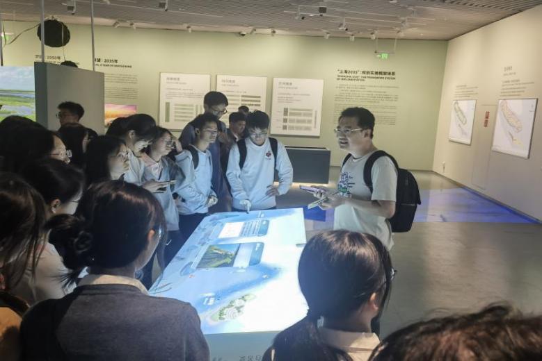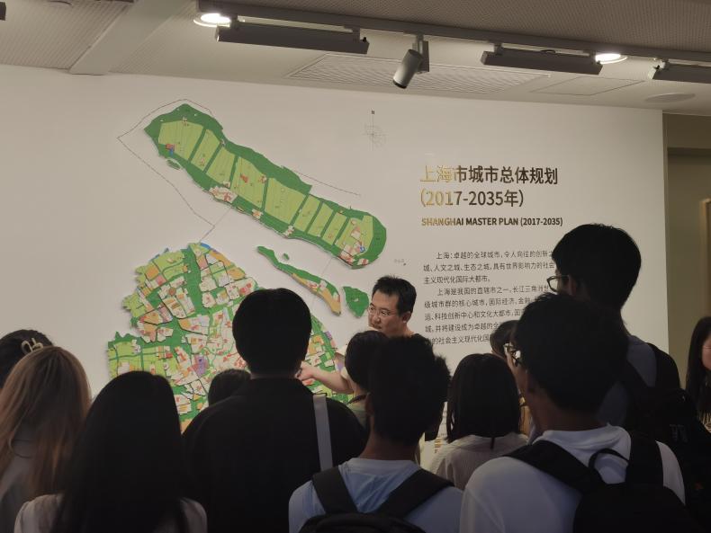 午饭过后,同学们在上海城市规划馆开启了下午的课程实践。张勇老师为大家介绍了城市规划馆的具体情况后带领大家一同参观展馆,并对上海市整体地面沉降情况、典型建筑物地面沉降情况进行介绍。在参观过程中,同学们了解到上海市的城市总体规划是要建设人文之城、生态之城和创新之城。
