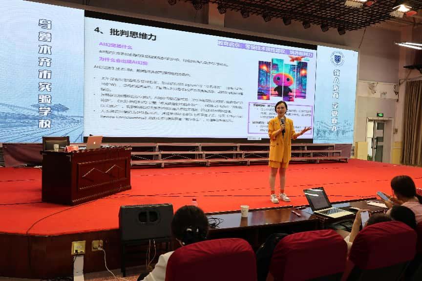 授牌仪式后,华东师范大学教育信息技术学系高级工程师鲁力立老师带来题为《AI时代,我要如何教学》的专题讲座。他围绕AI时代背景下教师应具备的四大核心素养展开讲解,并带领现场教师动手实操,提供了具有前瞻性和实用价值的教学思路、方法与工具,帮助一线教师更好地应对教育数字化转型带来的挑战与机遇。
