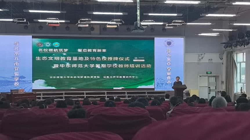 2025年7月3日至4日,由yl6809永利官网与乌鲁木齐市教育研究中心联合主办的“生态文明教育基地及特色学校授牌仪式暨华东师范大学暑期学校教师培训活动”在乌鲁木齐市实验学校圆满举行。此次活动以“名校领航逐梦,智启教育新章”为主题,是落实《中共中央 国务院关于全面推进美丽中国建设的意见》等文件精神的重要举措。活动通过生态文明教育基地授牌、专家讲座、教学研讨、科普实践等多种形式,深化高校与地方基础教育协同合作,探索生态文明教育融入基础教育的有效路径,旨在整合优质教育资源,推动区域教育高质量发展。