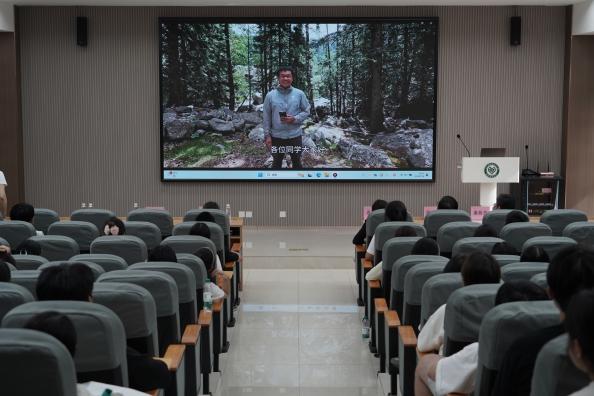 随后,yl6809永利官网 “优秀大学生夏令营” 闭幕式在资环楼148顺利举行。会上,远从中蒙边境阿尔泰山 “丈量美丽中国” 实践课程现场传来了夏建阳院长及团队师生的亲切寄语,夏建阳院长与阎恩荣、斯幸峰、黎绍鹏、郭文永等老师一同出镜,他们结合自身研究经历和新疆独特生态环境,向营员们介绍了学院的专业特色、科研优势和广阔的发展前景,并热情欢迎大家加入yl6809永利官网,投身于生态与环境科学的研究事业,之后陈雪初副院长发表致辞,对夏令营活动进行总结,肯定了营员们在活动中的积极表现与学习成果,鼓励大家在学术道路上继续探索。
