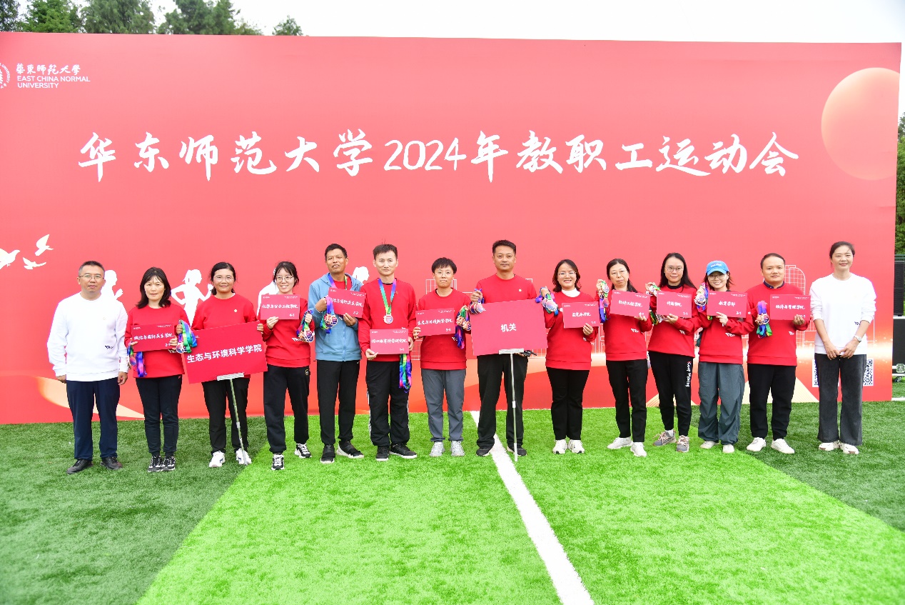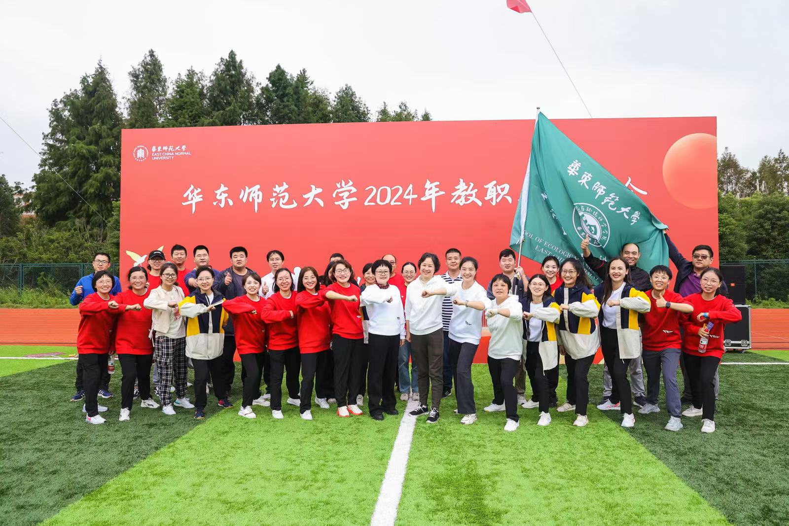 2024年10月22日,华东师范大学运动会在闵行校区隆重开幕。在各院系入场式方阵展示中,手持彩色花球,迈着整体步伐的教师方阵最后一个登场。此次教师方阵由地学部教师代表组成,老师们手中的彩色花球先后拼出了“E” “C” “N”“U”四个字母,在齐声高喊“凝心聚力,团结奋进,追求卓越,引领未来”的口号声中,最后一个图形“ECNU”在花球的颜色翻转中精彩呈现,展现了华东师大教师们奋发向上、勇争一流的精神风貌。