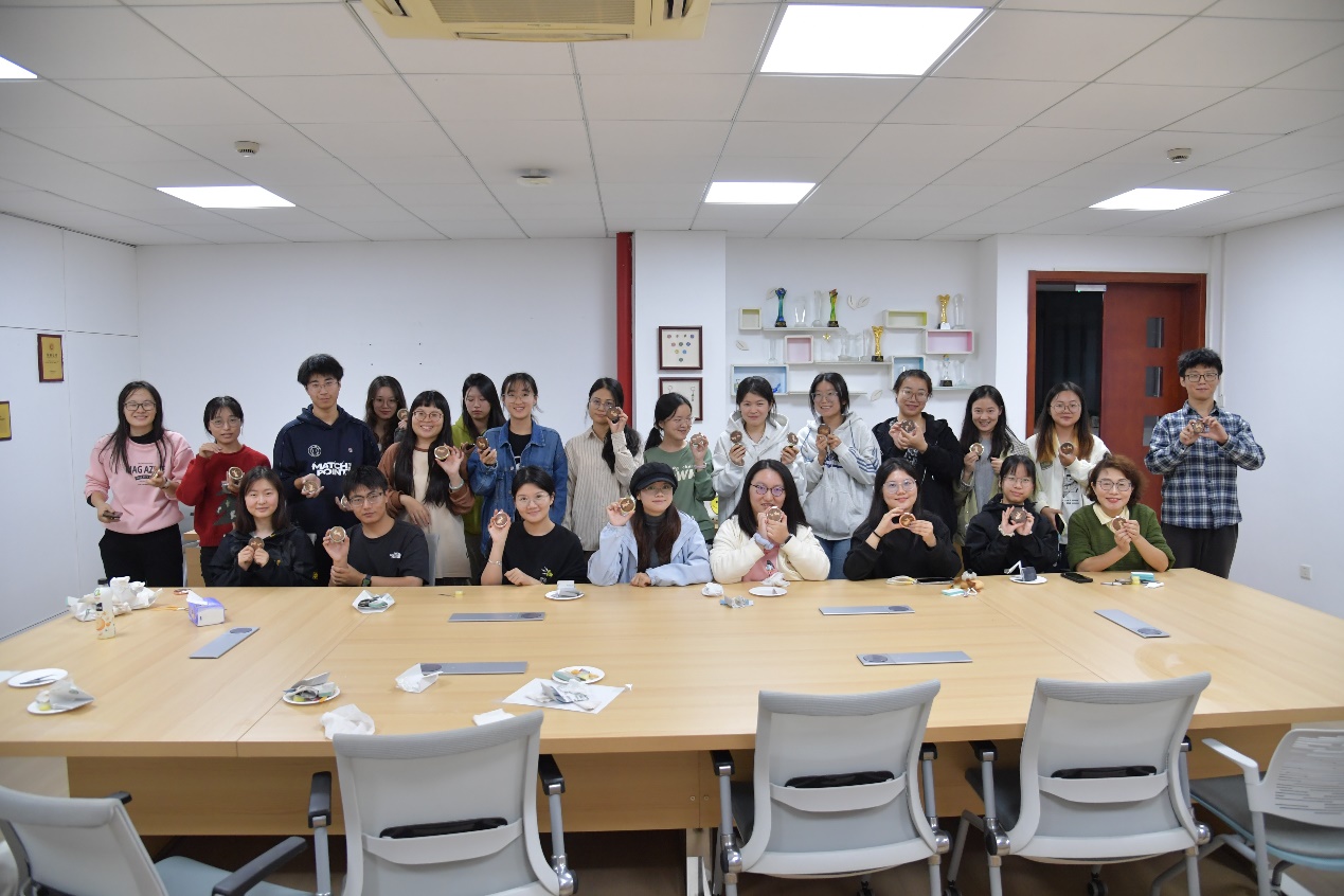 2024年11月1日第21号台风“康妮”给上海带来狂风大雨,但傍晚时分同学们还是如约来到资环楼435,开展了一场别开生面的手工制作活动,自己动手制作一个可爱的玉兔手工镜。辅导员路葵老师参加此次活动。