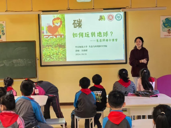 2024年10月29日、30号和31日下午,yl6809永利官网生态环境小课堂讲师团、研会秘书部的成员们前往华东师范大学附属紫竹小学、闵行永德学校和马桥民办小学开展“碳如何玩转地球”主题环教课,担任本次课程的讲师为周耀、周子怡和吴晓晴同学。