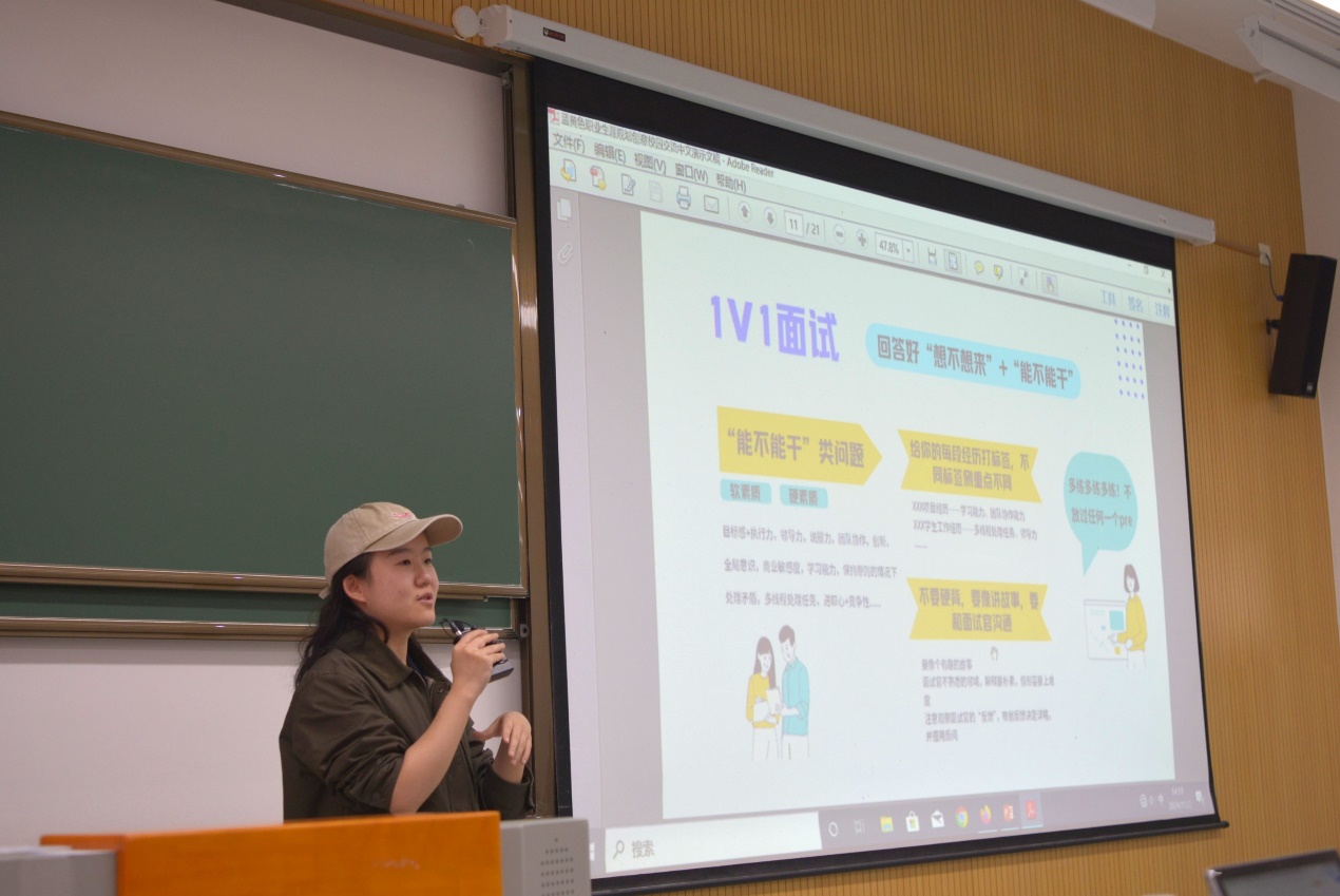 活动伊始,王九洲同学介绍了三位分享嘉宾的基本情况,希望通过嘉宾们分享的就业经历和感悟,为同学们开拓视野,提供职场经验,化解求职焦虑,确立就业方向。