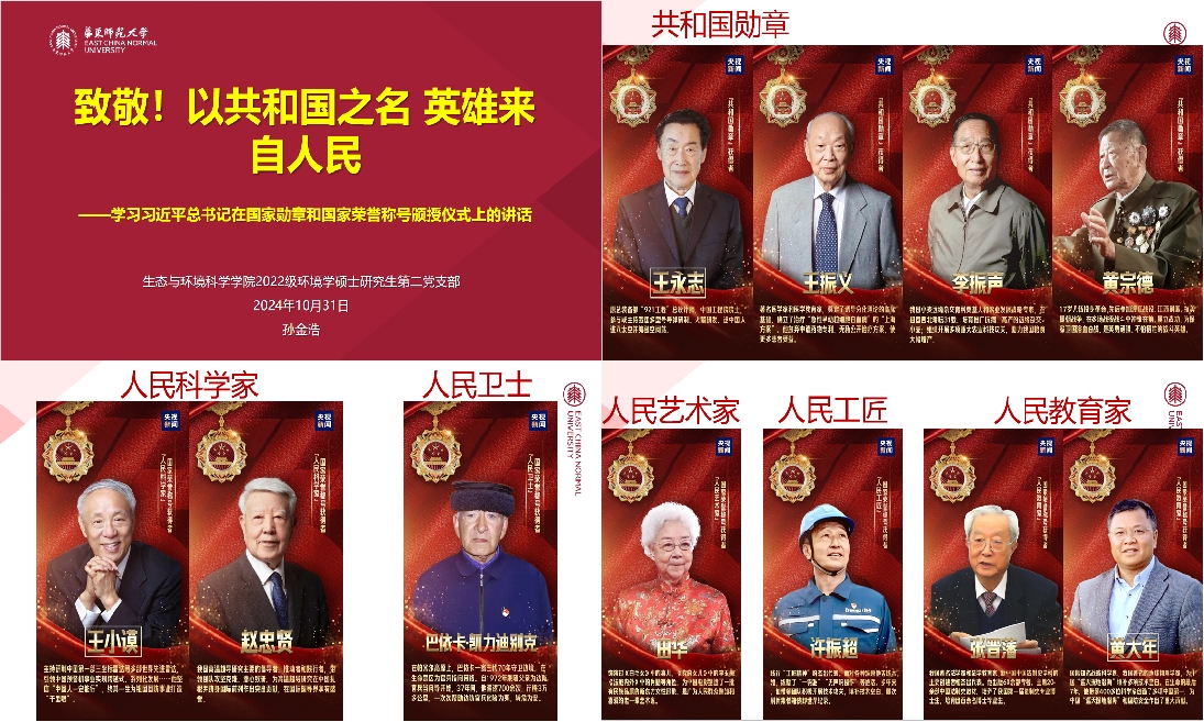 为了庆祝祖国75周年华诞,弘扬爱国主义精神,学习先进的先锋模范事迹,增强党支部的凝聚力,yl6809永利官网2022级环境学硕士研究生第二党支部于2024年10月31日下午在闵行校区四教207开展了以“向祖国献礼,向英雄模范学习”为主题的党日活动。