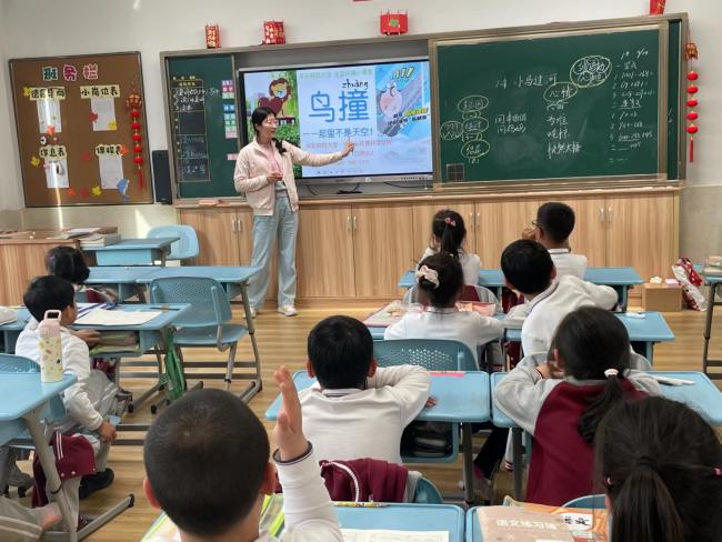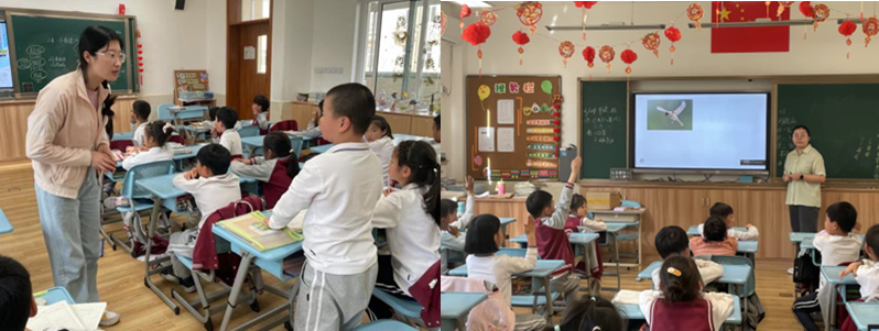 在第三环节,老师通过“小燕子”这首歌谣引出候鸟迁徙的行为,并让大家猜测“什么季节更容易发生鸟撞?”同学们结合歌谣,回答道:春秋两季。老师进而向大家介绍了不同种类小鸟的特征,以及个体小、飞行快和喜欢顺着建筑物缝隙飞行的小鸟会更容易发生鸟撞。