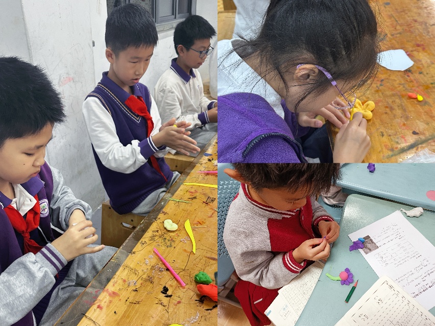最后,到了学生们最期待的手工环节,他们迫不及待地挑选自己喜欢的粘土来制作粘土花。在制作过程当中,同学会把多的粘土分享给身边的同学们,大家互帮互助,团结协作。学生们在成功制作粘土花之后,纷纷向讲师展示成果。此次生态环境小课堂也在学生们制作手工的欢乐氛围中拉下帷幕。