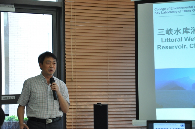袁兴中教授的主要研究方向为湿地生态学、生态工程研究,近十年来,一直负责三峡库区澎溪河湿地科学实验站的建设和发展,带领其学术团队从事着三峡库区消落带新生湿地的长期生态学研究,形成了系列具有创新性的生态工程技术体系,受到国内外广泛关注。讲座中袁兴中教授详细讲解了三峡水库消落带湿地的现状和存在的问题,以及如何借鉴中国传统的生态智慧探索复合林泽工程、共生型浮床工程等生态工程模式等。