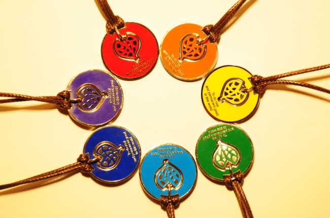 挂件由院徽设计者刘冬惠同学在院徽的基础上设计完成,分为“赤橙黄绿青蓝紫”七种颜色,挂件正面中央为象征“生环”学院标志的叶形图案,并写有院训“To do real and permanent good in this world”,背面刻有学院英文全称。七彩挂件既是一种鼓励和奖励,也是大学期间很有意义的纪念品。挂件一经发布,立刻受到学院师生的热烈欢迎,很多同学表示希望能在大学期间集齐全套。