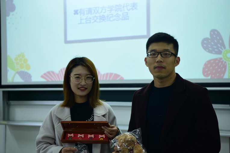 开场是参与者准备的情歌对唱环节带动氛围,双方学院互赠学校纪念品。接着,双方分别派代表发言讲述了两校的校史,让两校同学增进了对彼此学校历史文化的认识。